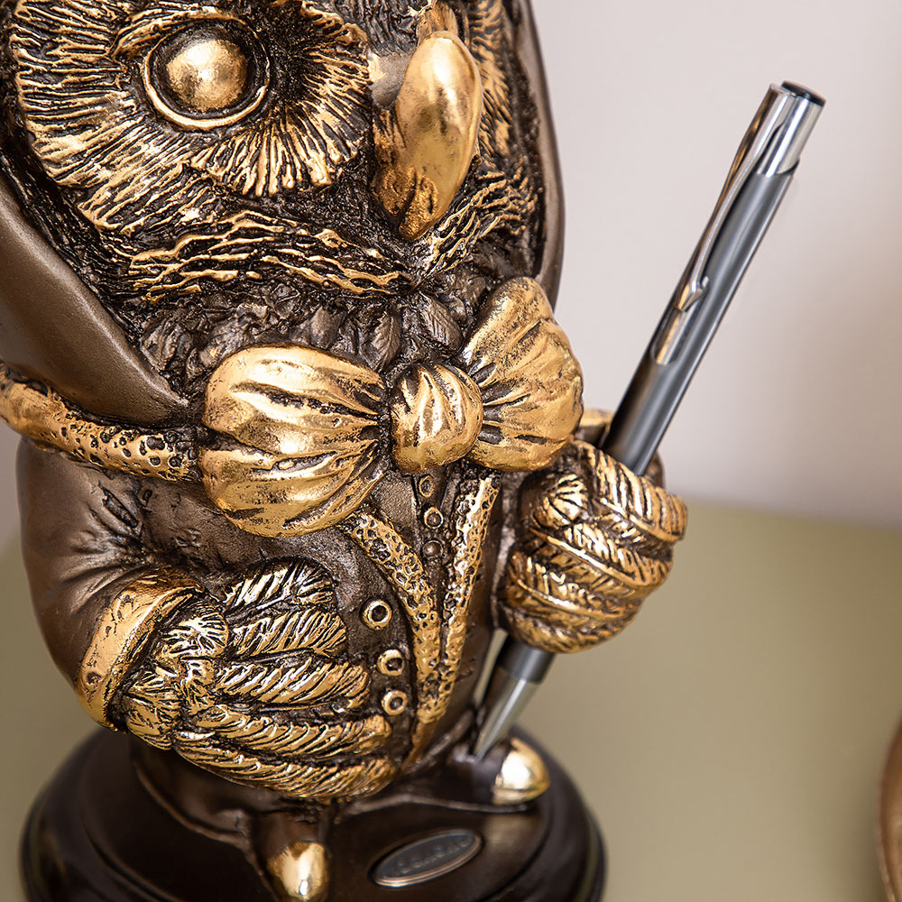 Подставка для очков «Филин» — изысканный аксессуар, сочетающий глубокую символику и практическую функцию. Мудрая птица, выполненная из мраморной крошки с золочением, станет хранителем ваших очков и источником мудрых решений.