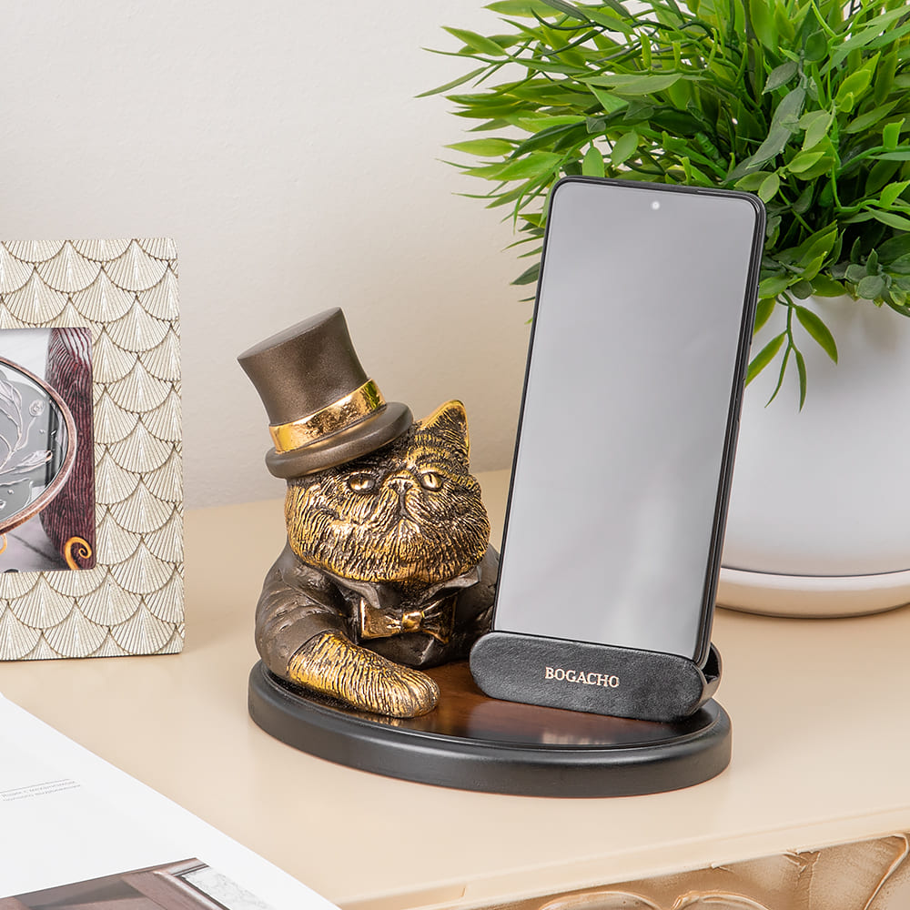 Держатель для смартфона «Чеширский кот» — идеальное сочетание практичности и сказочной эстетики. Удобный аксессуар для повседневного использования, выполненный из натурального мрамора, который подарит вам улыбку и освободит руки.