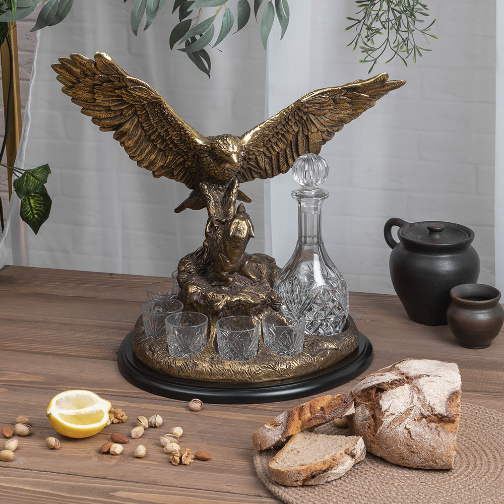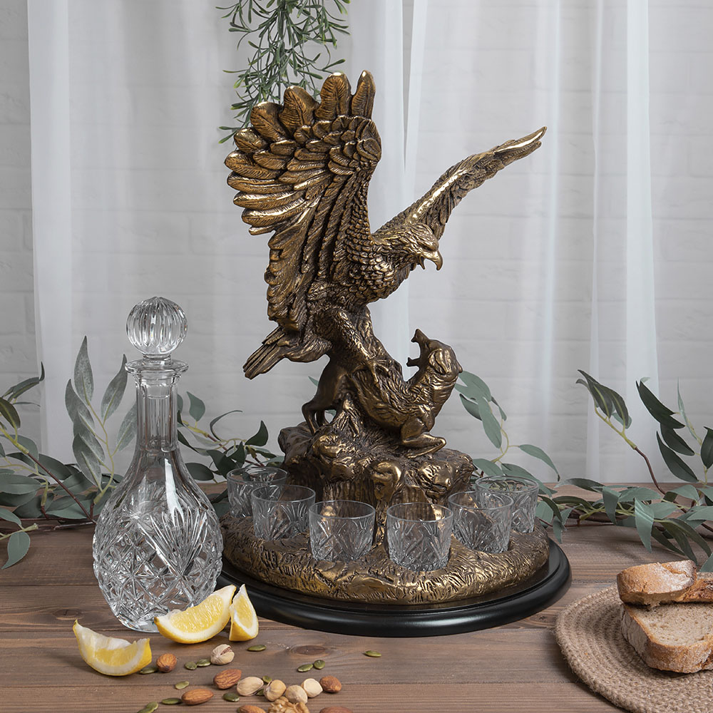 Набор «Поединок орла с шакалом» — эксклюзивный питейный набор, где искусство встречается с глубокой символикой. Величественный орел, побеждающий шакала, олицетворяет торжество добра над злом и силы духа над низменными помыслами.