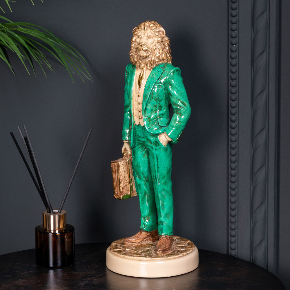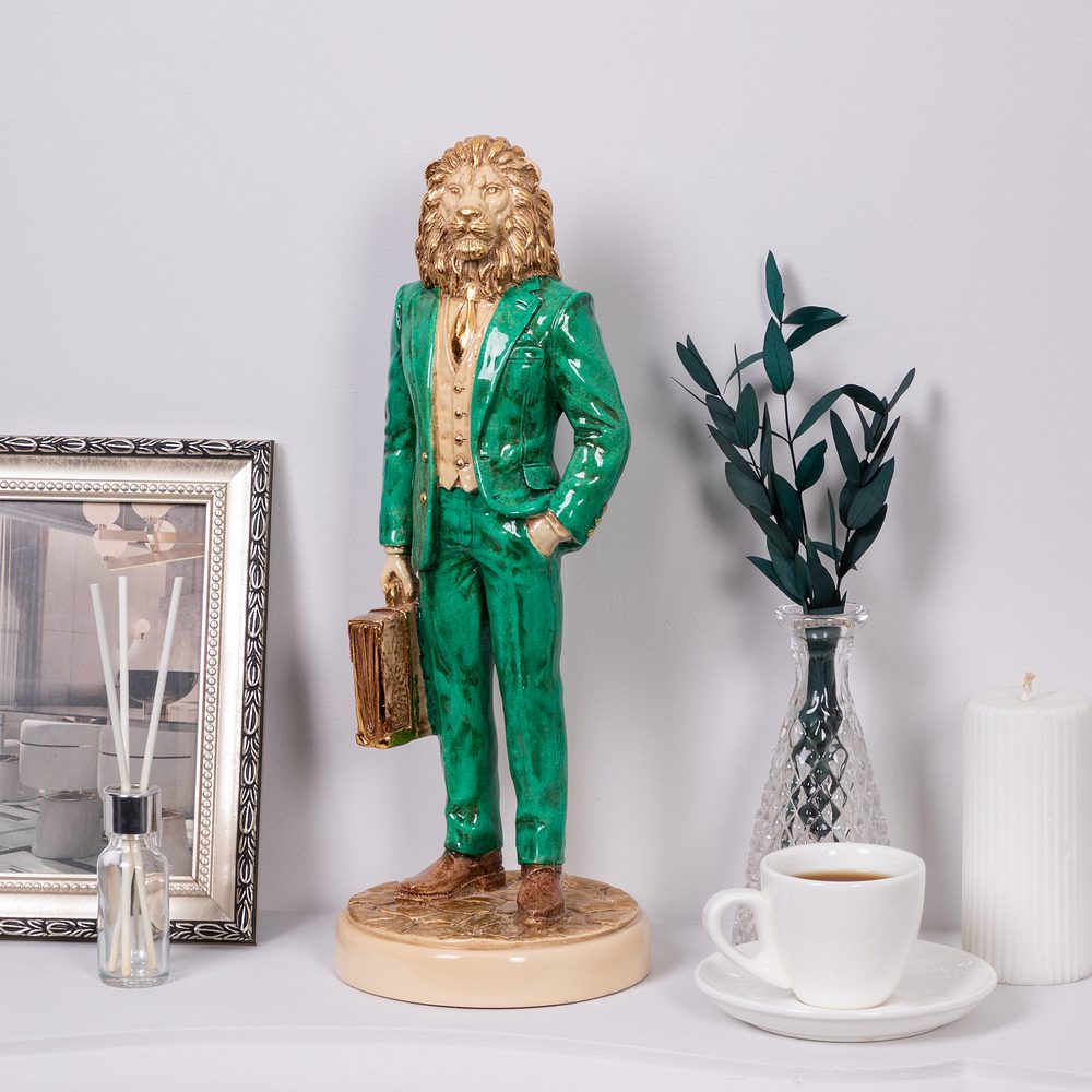 Скульптура Лев Бизнесмен Изумрудный